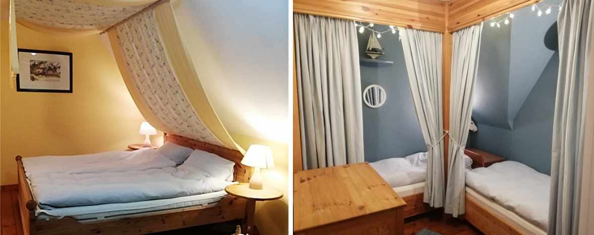Die Ferienwohnung Ose bietet mit 65m² für 4-6 Personen ausreichend Platz. Mit dem direkten Zugang von Ihrer Wohnung zum Apfelgarten können die Kleinen im Sommer ständig rein und rauslaufen, ohne aus dem Blick zu geraten. 1 Schlafzimmer mit Doppelbett und zwei Schlafkojen bieten für 4 Personen "richtige" Betten. Das Sofa im Wohnzimmer kann zu einem Doppelbett ausgezogen werden, so dass maximal 6 Personen Platz finden.